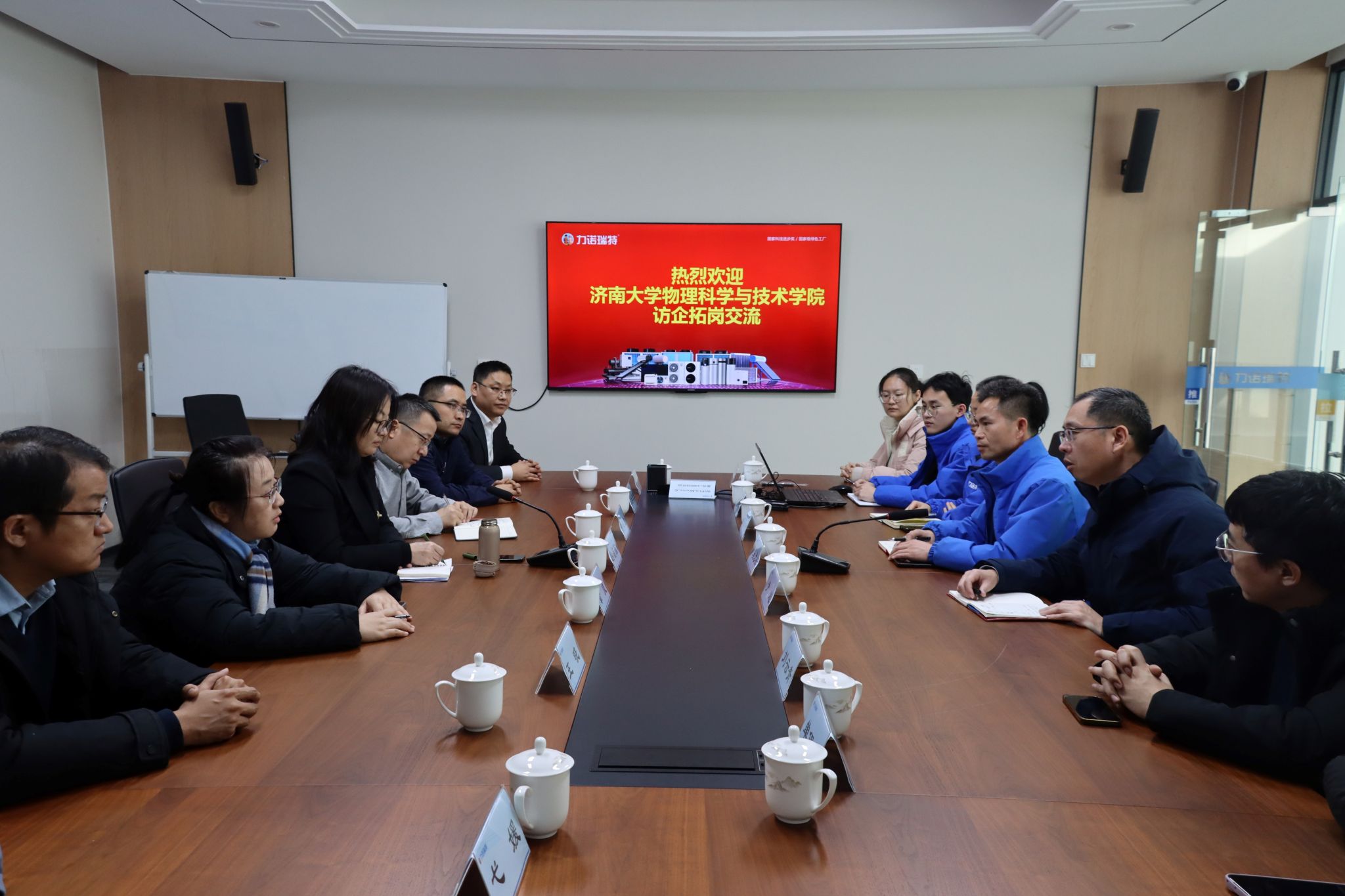 在九章(济南)量子技术有限公司,公司总经理徐佳敏、副总经理楼小永、员工代表参会,双方就量子未来技术研究院建设、专业培育、就业实习等方面问题进行洽谈。