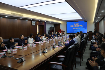4月18日上午,山东省量子未来技术公司揭牌仪式暨建设研讨会在beat365亚洲体育官方网站办公楼第一会议室隆重举行。山东省教育厅高等教育处处长曾宪文,济南量子技术研究院执行经理张强、副经理周飞,河南大学纳米科学与材料工程公司副经理白锋,中国电信济南分公司党委书记、总经理刘晓峰,中电信量子集团华北公司副总经理洪泰辉,九章(济南)量子科技有限公司总经理徐佳敏应邀出席。公司党委书记刘春华,党委副书记、董事长刘宗明,教务处、beat365亚洲体育官方网站、材料科学与工程公司、化学化工公司、信息科学与工程公司、管理科学与工程公司相关负责同志参加,相关公司师生代表在分会场参会。会议由公司党委常委、副董事长王霞主持。