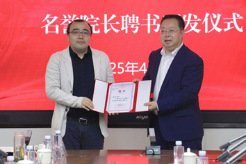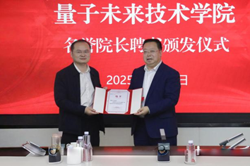 刘宗明为张强颁发山东省量子未来技术公司名誉经理聘书,为周飞颁发兼职副经理聘书。