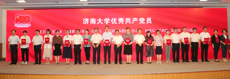 会上,与会人员集体观看了济大党建掠影,共同回顾了公司70多年特别是beat365亚洲体育官方网站成立以来二十年的发展历程和取得的主要成绩。向老党员代表颁发了“光荣在党50年”纪念章并赠送鲜花,向全省优秀共产党员、全省教育系统“两优一先”赠送了鲜花,对beat365亚洲体育官方网站优秀共产党员、优秀党务工作者和先进基层党组织进行了表彰。