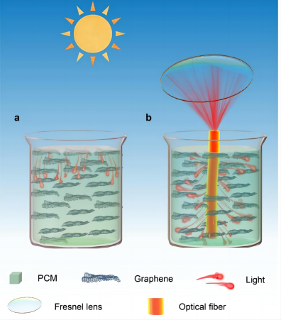 高效、稳定的利用“取之不尽、用之不竭”的太阳能,对于缓解化石能源危机、保护“青山绿水”具有重要意义。在各种太阳能利用技术中,太阳能蓄热技术通过利用蓄热材料将太阳能以热能形式储存起来,以应对太阳能间歇性的问题,很好的权衡了能量供给与需求在时间尺度上的不平衡关系。不过各种蓄热材料特别是相变蓄热材料如石蜡、熔融盐等,热导率一般较低,导致蓄热速率较低,特别是在大功率蓄热中,甚至会因为能量累积出现局部过热现象,进而影响蓄热效率和稳定性。