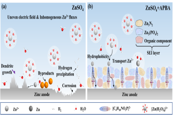 图3.锌金属负极电镀形貌表征                                                      4.界面调控机制示意图
