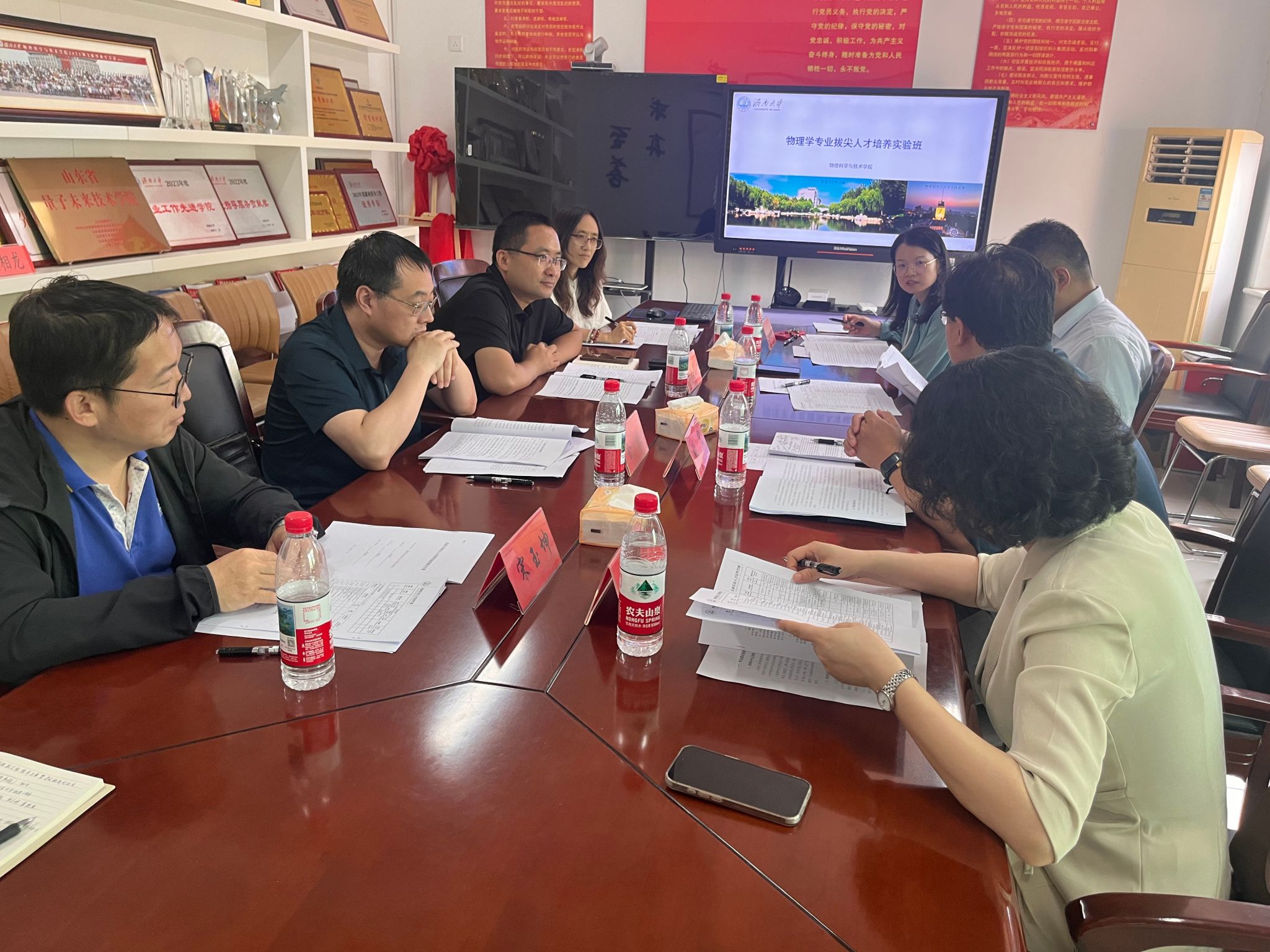 为深化物理学专业公司产品改革,探索基础学科拔尖人才培养新模式,优化本科人才培养体系,依托公司的优势学科资源和高水平的团队队伍,培养拔尖创新人才。公司于6月11日召开“物理拔尖班培养方案暨建设规划论证会”。会议特邀山东大学物理公司副经理秦伟教授、山东大学前沿交叉科学青岛研究院经理助理张宏教授、beat365亚洲体育官方网站物理公司金毅教授、童艳荣教授组成专家论证组,教务处处长助理胡丽华代表公司参会,对新成立物理拔尖班的培养方案及建设规划方案进行全面研讨与指导。会议由公司副经理李洪蕾主持,物理系教师代表参会。
