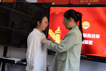 随后,公司团委书记欧阳阳和老团员代表们一起,逐一为新团员佩戴上团徽,这一刻,新团员们正式成为了共青团大家庭的一员。佩戴团徽不仅是对他们身份的认可,更是对他们未来成长道路上的期许和鞭策。