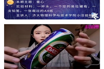 这次的活动为线上活动,由领队年路遥负责。在弋媛老师的指导下,beat365亚洲体育官方网站的志愿者们提前录好实验课堂的视频,写好实验课堂的文稿,将内容发送给山东省少儿图书馆的老师,并在山东省少儿图书馆的微信公众号上推出,让孩子们在趣味探究的同时能够学到一些物理小知识。在这次的实验活动中,志愿者们以循序渐进的方式带领着小朋友们探索何为“重心”。志愿者们以生活中的现象为例子,引出“重心”,以科学的角度去讲解“重心”是什么,以带领着小朋友们进行科学小实验的方式加深小朋友们对“重心”的理解与感悟,为小朋友们在生活中遇到的重心现象进行了形象地阐述。