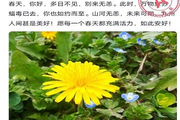 为了缓和同学们疫情带来的紧张气氛,以健康的心态迎接接下来的生活,物理公司青年志愿者协会于4月3日举办了“驱疫迎春,面向美好未来”的线上摄影作品征集活动,号召同学们走出家门,感受春的到来。