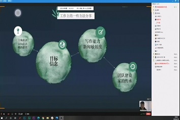 疫情期间,线上宣传是员工工作进行的主要手段。为了保证新闻宣传工作的高度准确性和高质量,4月25日,物理公司新闻宣传中心线上举办了线上宣传工作动员大会。新闻宣传中心指导教师伊梦寒出席会议。