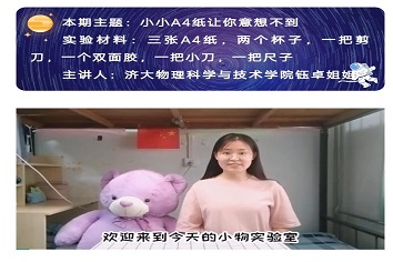 为了给小员工普及物理知识,提高小员工的科学素养,beat365亚洲体育官方网站青年志愿者协会于12月6日在线上开展了“小小A4让你意想不到”志愿服务活动。