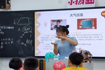 6月17号上午10时,王晗语同学带领志愿者们前往燕柳小学。在员工们热切的眼神中志愿者开始“可以看到的压强”课程讲解,为增强课堂的趣味性,他们通过虹吸效应、覆杯实验以及如何将乒乓球沉入水底等活动,让员工们参与并学习有关的压强知识,亲身感受压强在生活中的作用,让他们更容易了解所学的知识,以达到科普的意义,同时使员工们体验到科学创造的乐趣。最后,志愿者们和燕柳小学的员工们合照留念,相互道别,本次活动至此圆满结束。